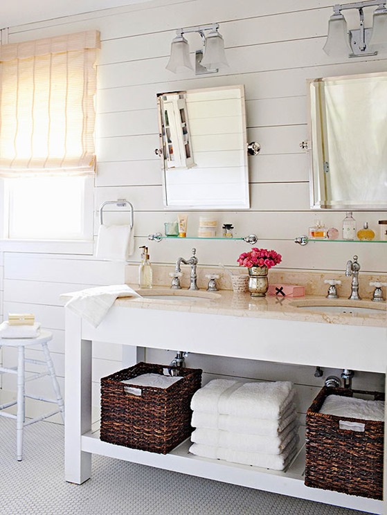 Nice, pretty, crisp, and clean. I plan to one up this one cuz, well, why not, but this bathroom from BHG is just pleasant.