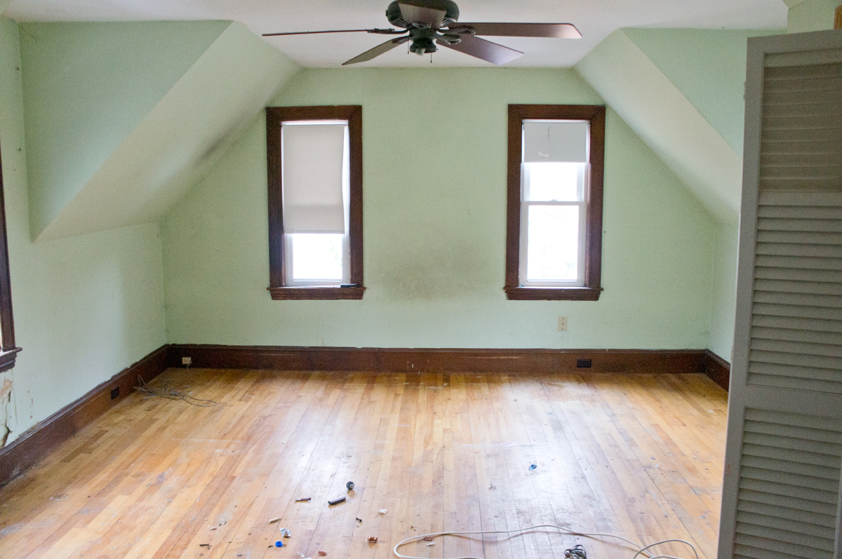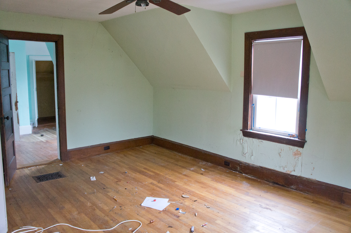 The master bedroom is shockingly large for a small house of this age. Even though you need to go through the bedroom above to get to it, I think this space will be a selling feature. The awkward, walk-through bedroom... well, it's not ideal for a 3rd bedroom, but this is where staging comes in. I'll stage it either as an office or a nursery and show how functional the space is!