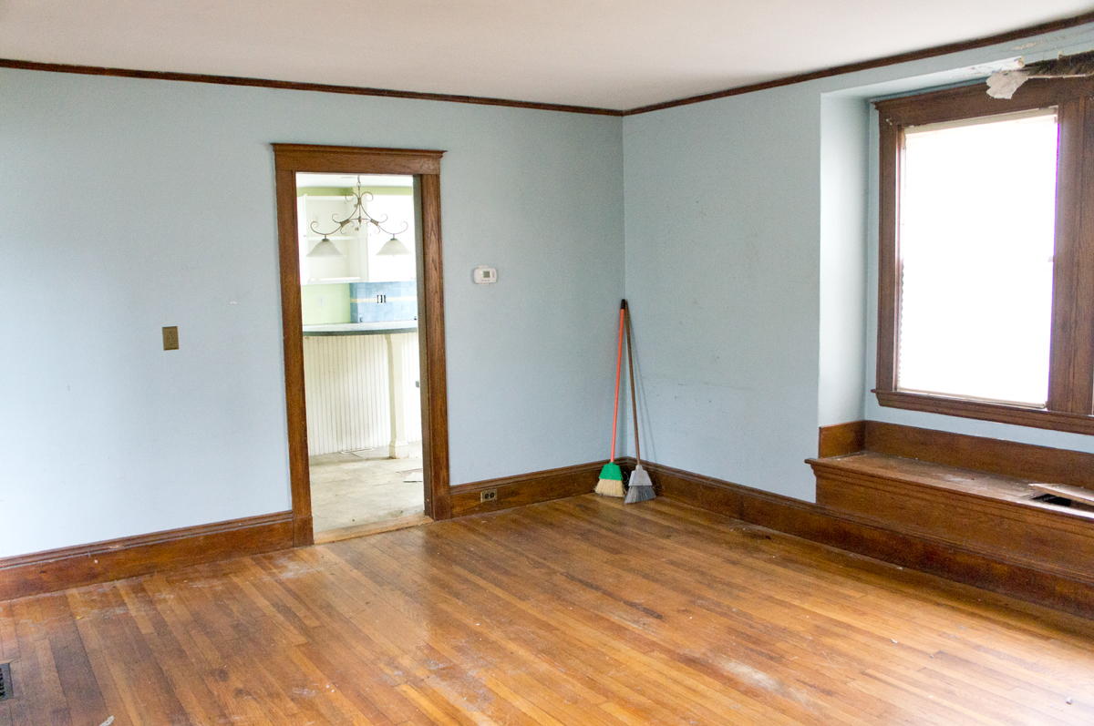 Aside from some needed yard cleanup, there wasn't too much I could dig my hands into just yet. Before any REAL work could get done, the house needed to be cleaned out and cleaned out it has been! If you happened to catch my Facebook Live walk-though yesterday, you've already gotten more than a sneak peek! After 4 overflowing dump trucks of stuff were removed, we can finally see all the bones of the house. Thankfully there were no surprises!!